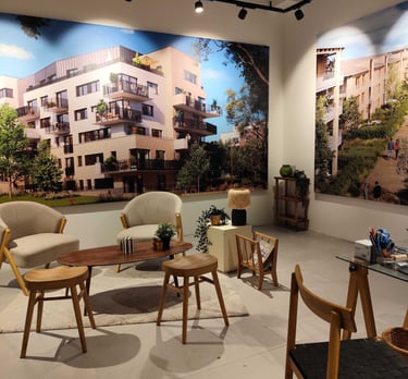 Elle doit rassurer, informer et faciliter la décision. Elle est souvent le premier contact concret entre un acquéreur et un projet encore en devenir. L’espace doit donc traduire immédiatement la qualité, la vision et le positionnement du programme immobilier.