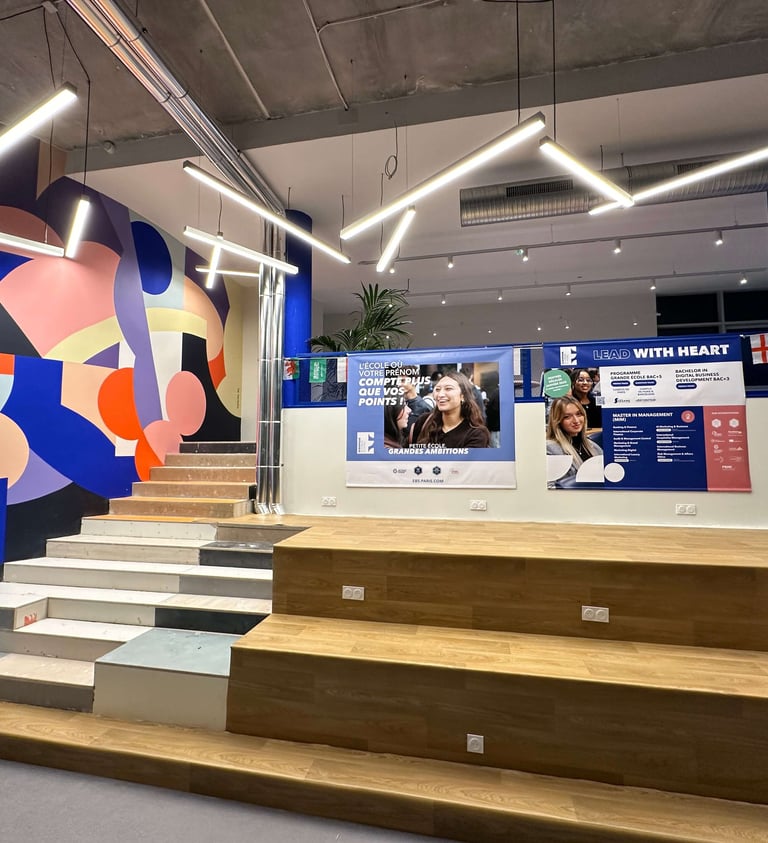 L’intervention visait à renforcer l’identité visuelle du campus, et d'en faire une école Instagrammable.