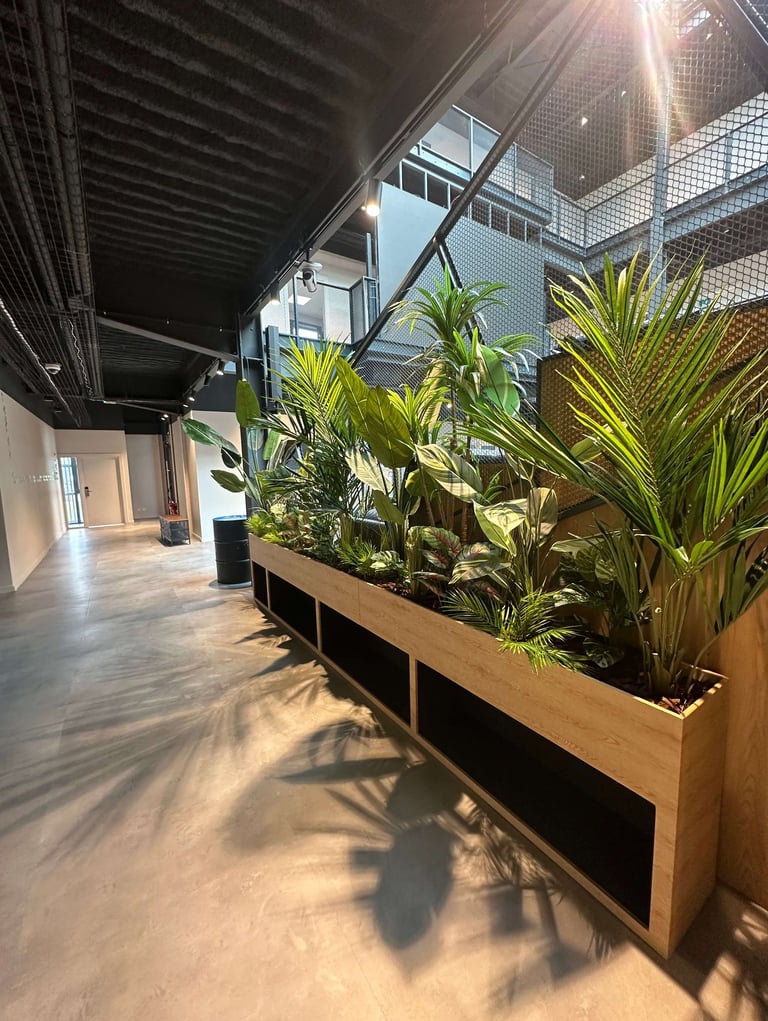 Entrée signature (balançoire, néon, cadre floral)