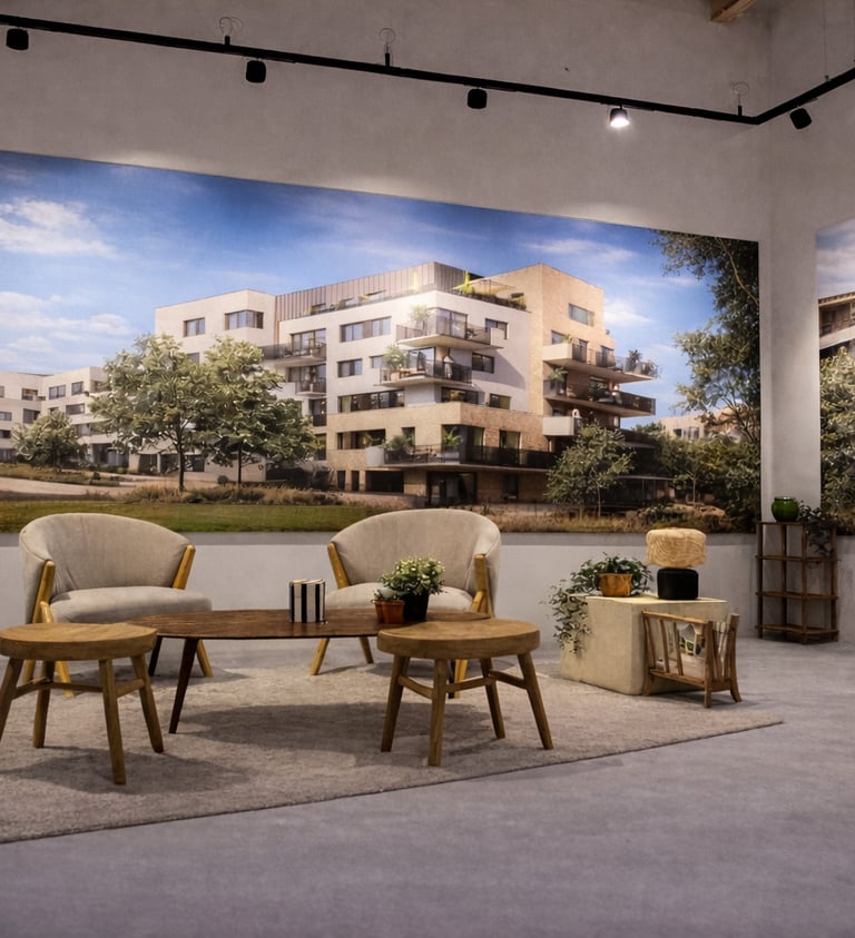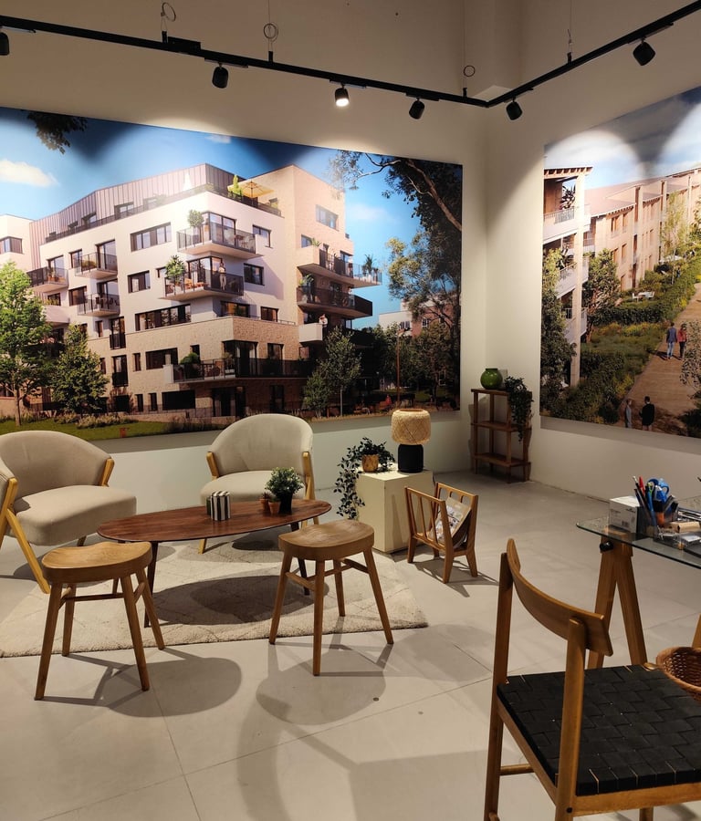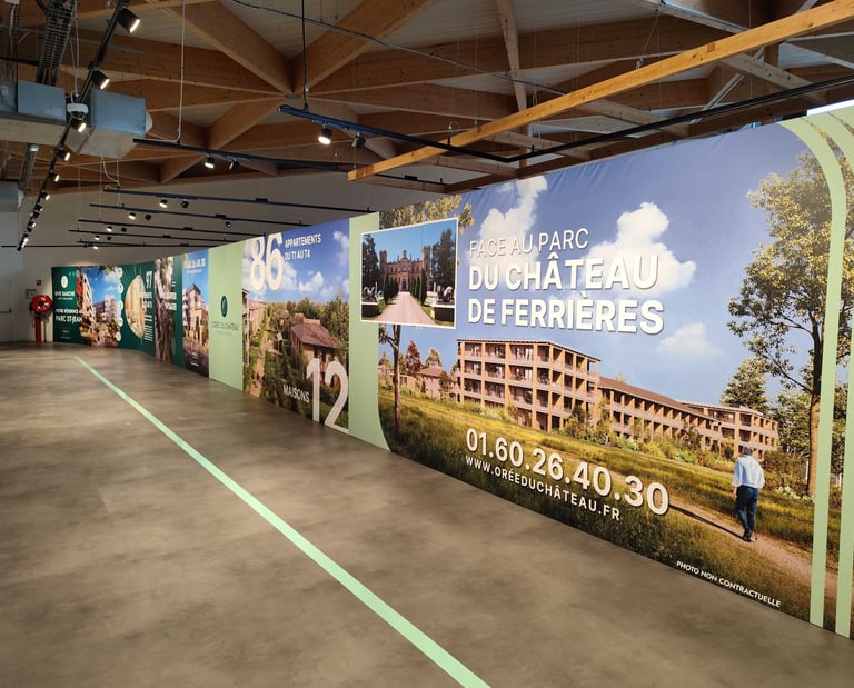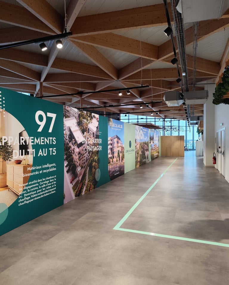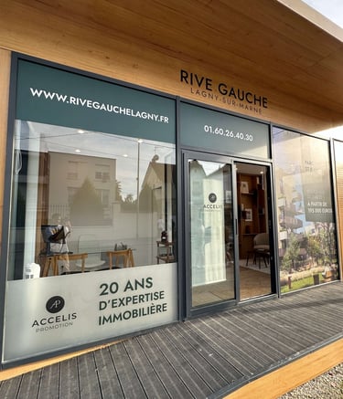 L'orée du Château est une promotion immobilière située à Ferrières-en-Brie, en face du Château de Ferrières. Nous avons participé à l'amènagement de la bulle de vente, qui partage son espace avec Rive Gauche Lagny, un autre projet d'Accelis Promotion.